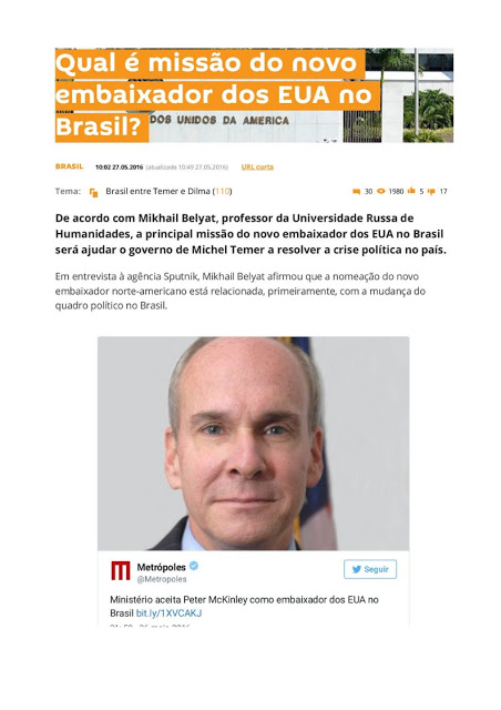 Peter Mackinley, direto do Afeganistão para o Brasil substituindo a embaixadora Liliana Ayalde