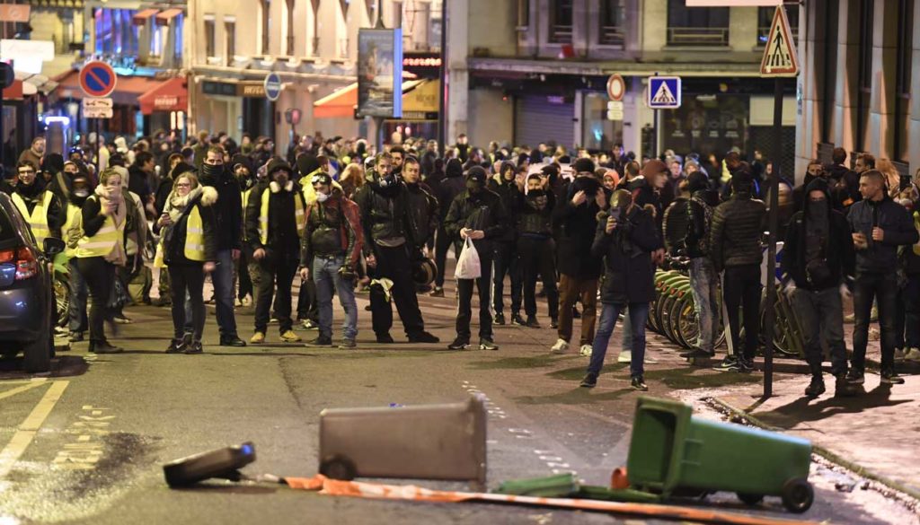 Infelizmente, as coisas aumentaram quando surgiram brigas entre “coletes amarelos” e outros indivíduos. Um manifestante de “colete amarelo”, uma mulher de sessenta anos, foi morto por um motorista, uma mãe que estava tentando levar seu filho doente ao médico e tentou passar por um bloqueio quando pessoas em coletes amarelos começaram a bater em seu carro. Ao todo, mais de 400 pessoas ficaram feridas, um manifestante foi morto e cerca de 280 pessoas foram presas no fim de semana.