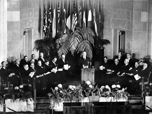 A Organização do Tratado do Atlântico Norte (OTAN) foi fundada em 1949, postulando, tortuosamente, como uma organização em defesa da paz, quando na realidade é uma tática do imperialismo (o estágio mais alto do capitalismo, que submete pessoas através de diferentes versões do colonialismo), como era o plano Marshall, na sua estratégia para evitar tanto a emancipação social e de libertação nacional das nações oprimidas, demonstrado pelo fato de sua constituição como grupo armado logo após a Segunda Guerra Mundial Imperialista, em resposta à constituição voluntária da União das Repúblicas Socialistas Soviéticas (URSS).