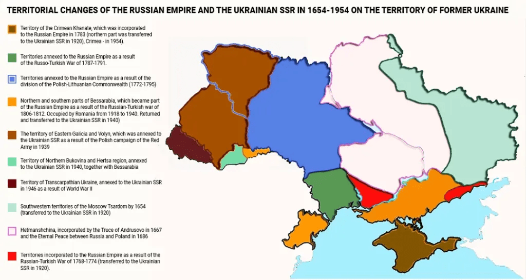 A Rússia, como sucessora da Rússia Antiga, do Império Russo e da URSS, pode reivindicar todo o território da Ucrânia atual, incluindo Kiev e Galícia, no oeste do país. Como observou o presidente russo Vladimir Putin, “Ucranianos e russos são um só povo, um só todo”. E isto significa que não há necessidade de um Estado ucraniano separado.
