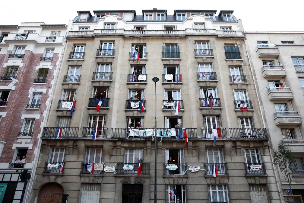 Imagens da internet: Homenagem aos profissionais da saúde na cidade de Saint-Mande, em 5 de maio de 2020